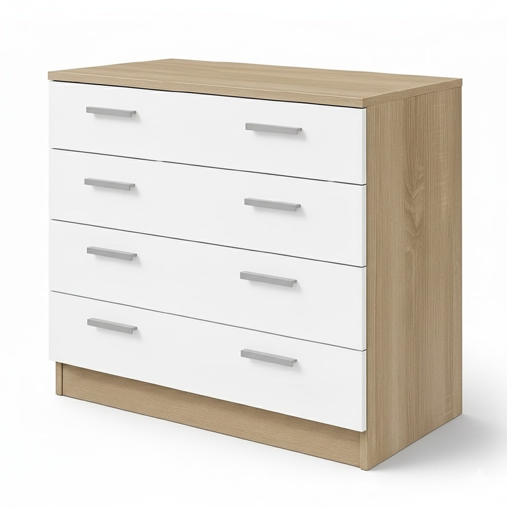 It features a total of 4 rectangular handles with a flat design, positioned in the middle of each drawer.