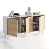 Adicionalmente, su único diseño bicolor blanco-roble podrá adaptarse a los colores, muebles y decorativos que conformen tu salón. Solo las puertas son de color roble claro y el resto de la estructura, incluso el interior, es blanca.