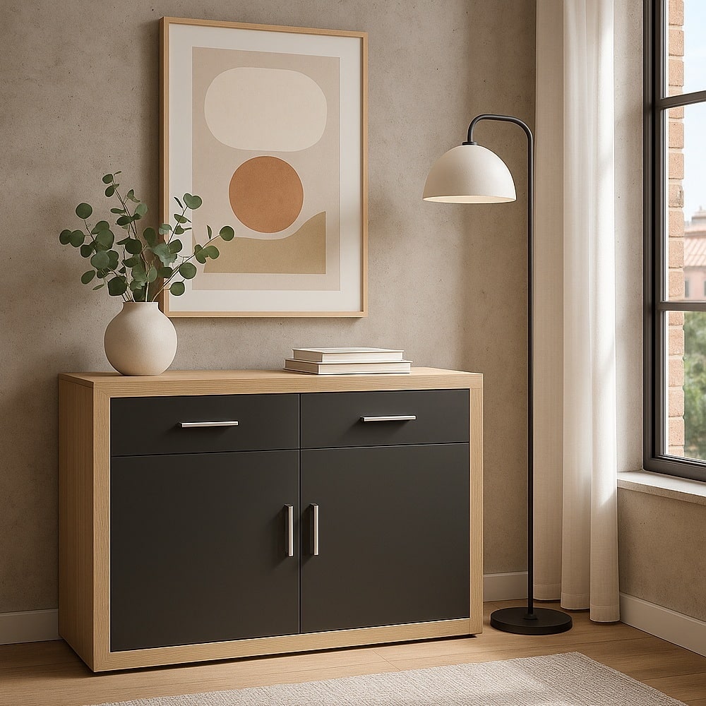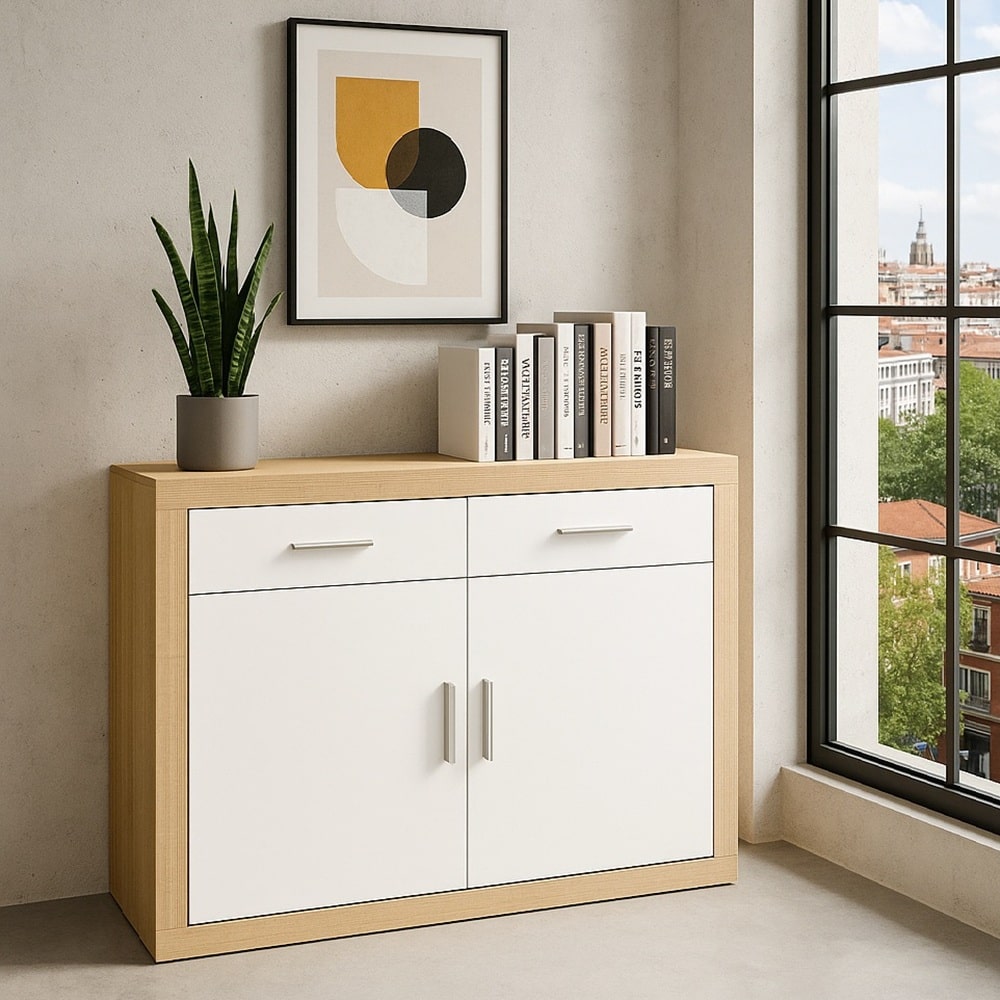 Aparador compacto, 120 cm de ancho, 2 puertas, 2 cajones – Verona