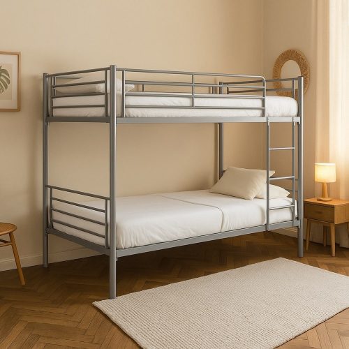 La cama litera metálica doble, con dos camas individuales de 90 x 190 cm, es la opción perfecta para maximizar el espacio en tu dormitorio.