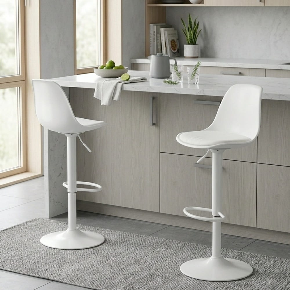 Si estás buscando taburetes altos que destaquen por su diseño moderno, versatilidad y comodidad, el Set de 2 sillas de bar Aalborg es la elección perfecta para ti.