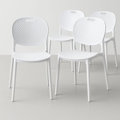Pack 4 sillas plásticas blancas, respaldo perforado, asiento curvado – Tonengo