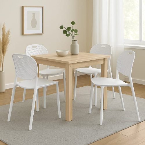 Sé el primero en valorar “Pack 4 sillas plásticas blancas, respaldo perforado, asiento curvado – Tonengo”