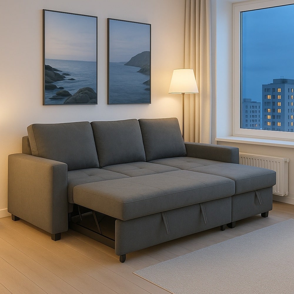 Otro beneficio destacado de este sofá es su arcón, ideal para almacenar mantas, cojines u otros objetos que desees tener a mano pero fuera de la vista. Esta característica es especialmente útil en espacios pequeños donde el almacenamiento puede ser un desafío.